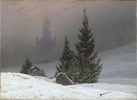 2. Cementerio de monasterio en la nieve (1817‑1819), en Staatliche Museen de Berlín.
