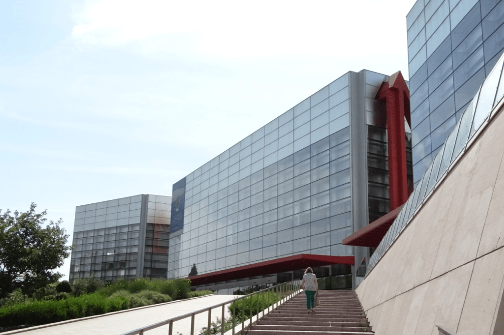 … volví a cruzar el Arlanzón, ahora bajo un sol tibio, hasta la Catedral del siglo XIII. Después alcancé el viejo puente de San Pablo y me topé con la imponente estatua del Cid Campeador (homenaje de Burgos al hijo predilecto, que en el crucial siglo XI, combatió tanto para reyes obedientes al papa como para visires enemigos). Dejé al Cid y crucé el río una vez más, regresando al sur de la ciudad. En el palacete renacentista que alberga al Museo de Burgos, pude contemplar los antecedentes prehistóricos, celtas, romanos, visigodos y medievales del bastión castellano. Y luego, a pocas cuadras, ingresé al enorme cubo vidriado.