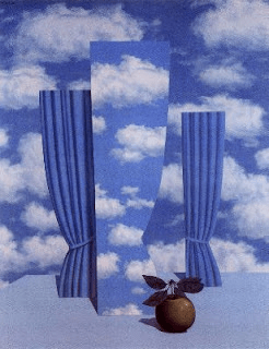 Dos cortinas cubren un cielo tapizado por blancas nubes. La cortina del centro, de mayor prominencia, es transparente. Y muestra el cielo y las nubes. En Magritte el objeto como superficie que oculta da lugar a la transparencia que devuelve a la visibilidad lo antes ocultado. La transparencia del objeto, la transparencia objetual, es ilusión. No se puede verse a través de una cosa. Pero esta ilusión nos devuelve una realidad antes visible tras su ocultamiento. El efecto de trompe-l’oeil amplia el campo de lo real como estado de continua visibilidad (6). La transparencia objetual se repite en La condición humana. Un caballete de pulcra y rectilínea madera descansa frente a una arqueada abertura en una pared