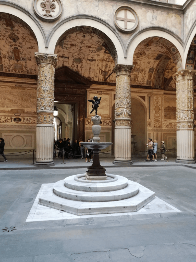 Fuente ornamental dentro de Galeria degli Uffizi.