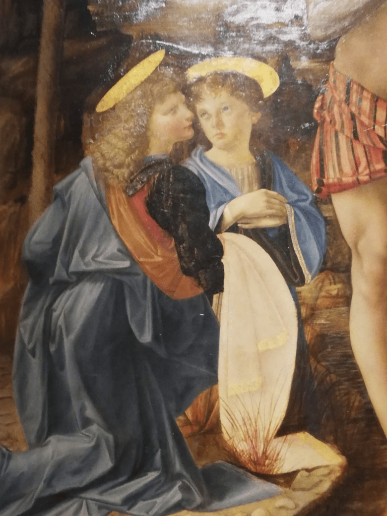 Detalle del Bautismo de Cristo; el ángel de la derecha hoy se acepta que procede del pincel de Leonardo.
