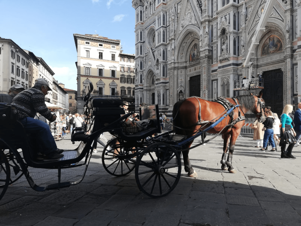 Uno de los caballos al servicio de los humanos frente a Santa María del Fiore.
