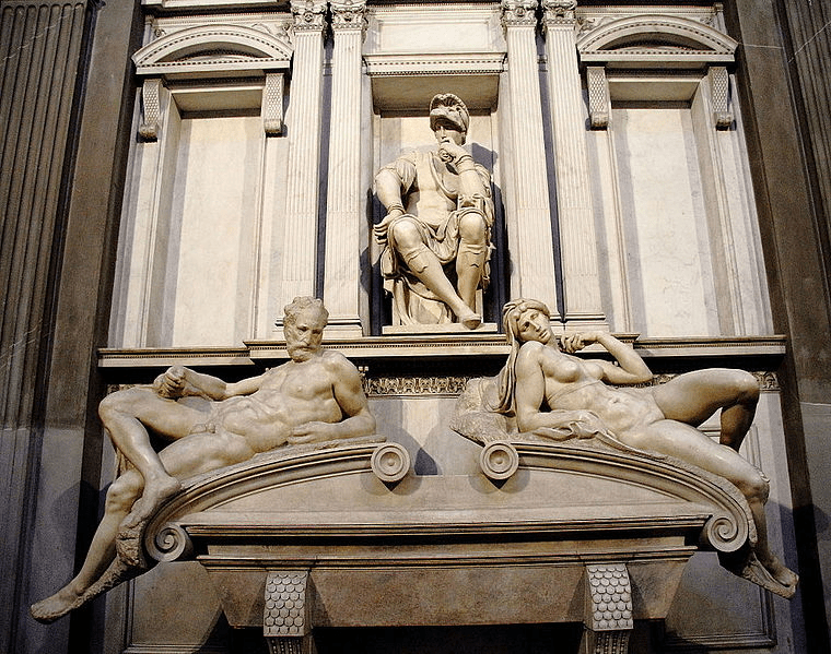 La tumba de Juliano de Médici, el atardecer y la aurora, por Miguel Ángel en Basílica de San Lorenzo (Foto Wikipedia)