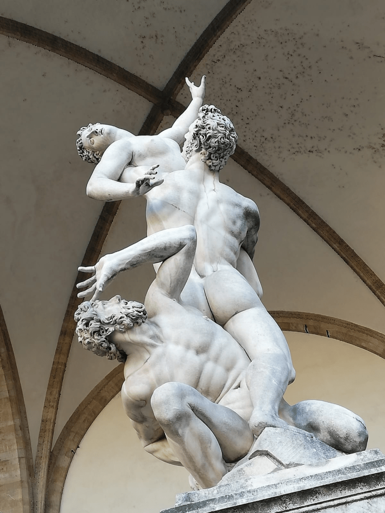El rapto de las sabinas, de Giambologna, en la Loggia dei Lanzi.