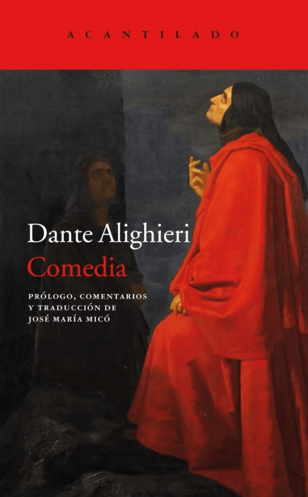 La divina comedia en versión de editorial Acantilado, con traducción y notas de José María MIcó.