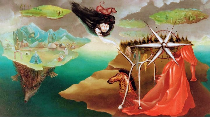 Leonora Carrington nació en 1917 en Inglaterra, y murió en la ciudad de México en 2011. Pintora surrealista, escultora, escritora nacionalizada mexicana.