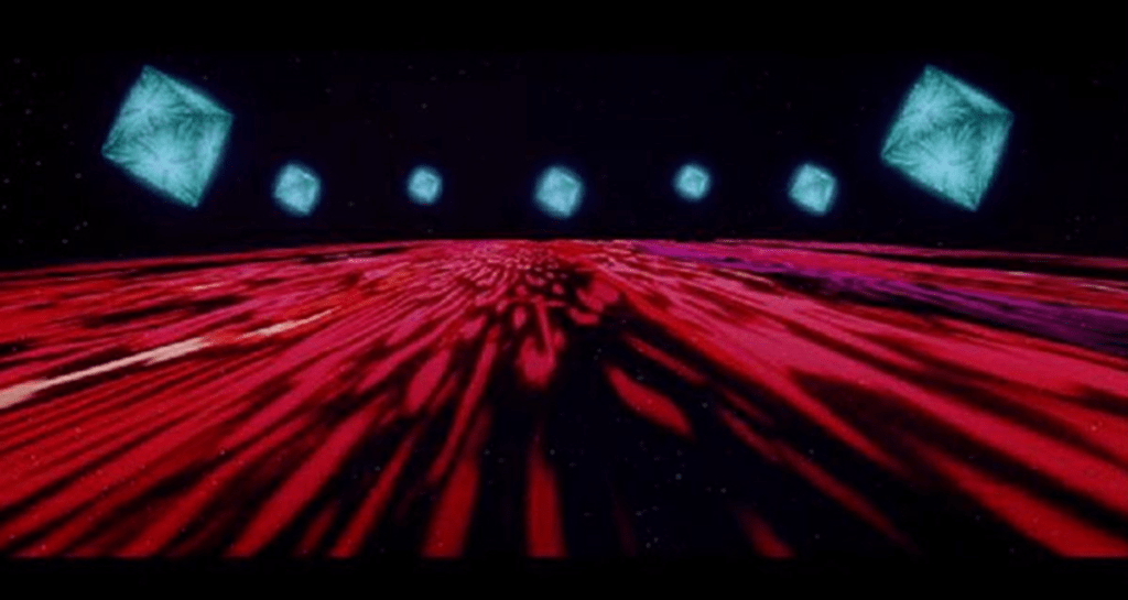 Más allá del abierto ojo de Japeto el astronauta advierte una expansión no-lineal. Las estrellas del centro se mantienen aparentemente inmóviles, mientras que las de las esquinas aumentan su aceleración. El espacio se altera, en el reloj del panel instrumental las décimas de segundo se suceden de forma lenta, irregular. Bowman ya podría experimentar que «había viajado aquellos millones de kilómetros en busca de misterio, y ahora, al parecer, el misterio estaba yendo a él» (35). Ya sabe con claridad que «aquel lugar no tenía nada que ver con Japeto, o con cualquier mundo al alcance de la experiencia del hombre» (36).