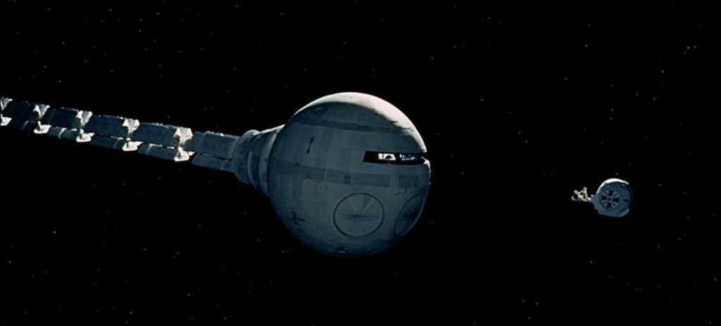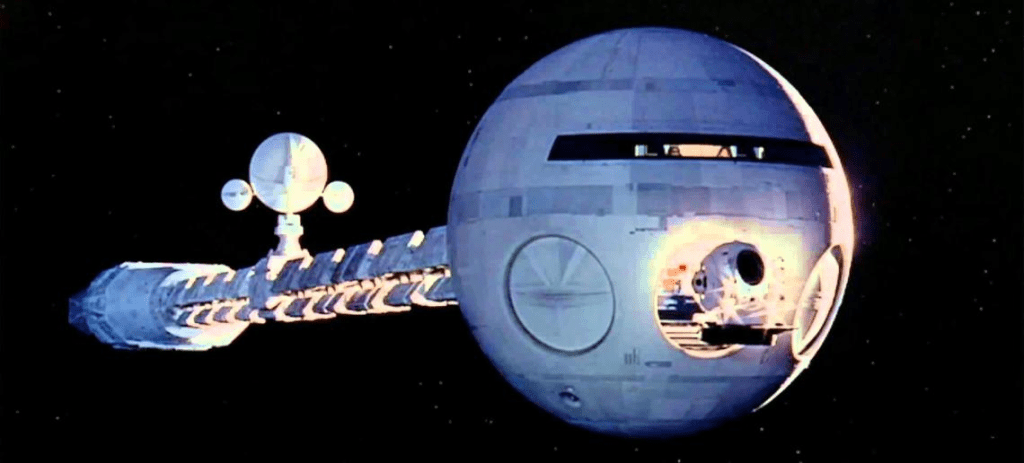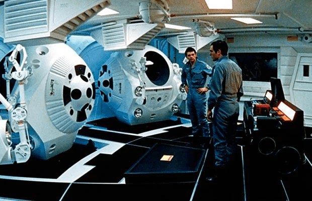 En su búsqueda de la recreación realista, el director prevé el posible aspecto futuro de los muebles del hotel espacial, el Orbiter Hilton, al que arriba el doctor Floyd (William Sylvester) en la nave espacial Orion. A su vez, la decisión sobre la escena del ingreso de Bowman en un recinto a presión en el vacío, en su enfrentamiento con Hal, no es decidida hasta que experimentos de la Fuerza norteamericana demostraron la posibilidad de supervivencia durante algunos escasos minutos en el vacío.