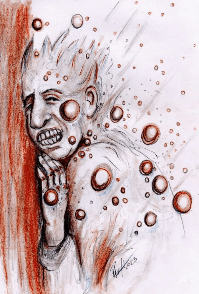 Ahora ya no estoy agitado. Escribo todo esto en mi teléfono, escondido de vuelta al pie del árbol frente a su casa, esperando que llegue, que me conteste. Tengo miedo de no haberlo imaginado. Me da miedo que no vuelva, de moverme y que mi cuerpo se desintegre; que también se convierta en la figura del cartel de una calle por donde nadie pasa.
