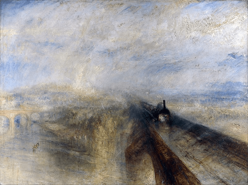 (2) Alusión a la pintura: Lluvia, vapor y velocidad, el Great Western Railway, 1844, Londres, The National Gallery.