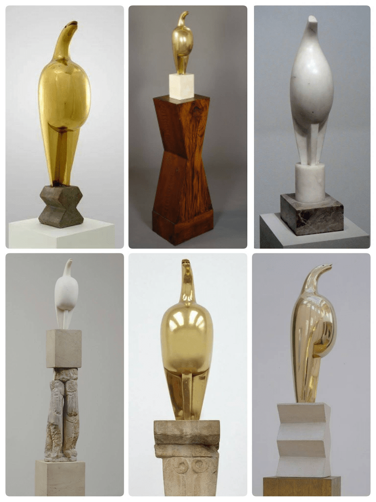 En 1913, en New York, Chicago y Boston, presentó Mademoiselle Pogany. Entre sus grandes obras se encuentran El Beso, La Puerta del beso ( en la ciudad rumana de Târgu Jiu), la Maistra, La musa dormida, o la célebre Columna sin fin, de casi treinta metros de altura, creada para el parque público de Tigre Jiu, cerca de su ciudad natal. La columna sin fin, simbólica unión entre tierra y cielo, estímulo hacia un vuelo de trascendencia.