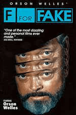 F de falso es una película docudrama de 1973, coescrita, dirigida y protagonizada por Orson Welles; en la que participa la bella Oja Kodar. Su eje narrativo es el relato de Elmyr de Hory sobre su carrera como pintor falsificador. Así surge el tema de la autoría, la autenticidad y la falsificación en la pintura, o la posibilidad de presentar como verdadera una biografía también falsificada, como la que escribió Clifford Irving sobre Howard Robard Hughes. Orson Welles participa como él mismo. F de Fake es un documental no convencional que deriva en ejemplo de ensayo cinematográfico.