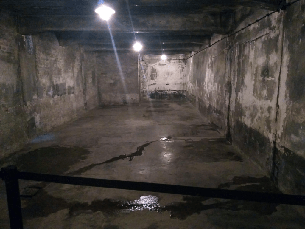 Con Olesia llegamos hasta la única cámara de gas sobreviviente. Las demás fueron destruidas por los alemanes, para que no fueran descubiertas por los soviéticos que avanzaban sobre el campo. Los homicidas querían ocultar su infamia.