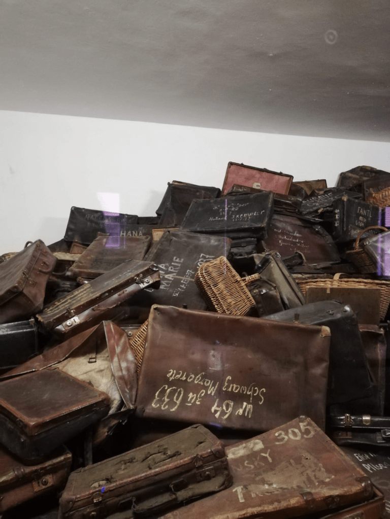 Y nos adentramos en las salas en las que se apiñan 110.000 zapatos, 3.800 maletas de cuero, cientos de anteojos deteriorados, 470 prótesis, dos toneladas de pelos.