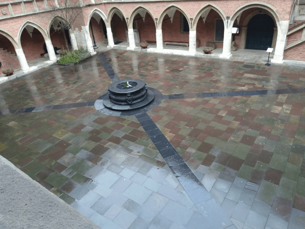 En un nuevo día de nubes veloces y pujantes, decidimos repetir con Laura una de nuestras prácticas viajeras favoritas: el libre deambular por las calles en las que éstas se convierten en puentes hacia lo imprevisto. Y qué grande es nuestra sorpresa cuando por una angosta calle lateral a la plaza, descubrimos un pasillo abierto, y la indicación: Universidad Jaguelónica. La universidad de Cracovia fue fundada en 1364 por Casimir III, no en vano llamado “el Grande”. Una de las universidades más antiguas de Europa, su nombre es por la dinastía Jagolia, de los Jagellón, de origen lituano, que regía en esos tiempos.