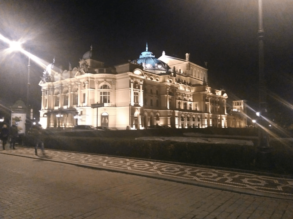 Nos sorprende la bella estampa de ese edificio, sólido y delicado, aún más vivo en la noche, con el nombre de un poeta, Slowacki, todo un arquetipo del romanticismo místico polaco del siglo XIX.