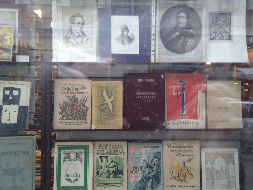 Una librería antigua, frente al lugar que nos alojábamos, no despertó fuerte interés también, y nos deparó un imaginario puente a otros momentos del dramático pasado polaco del que Cracovia fue parte.