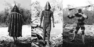 Personajes del último Hain de los onas, fotografiado por Gusinde en 1932.
