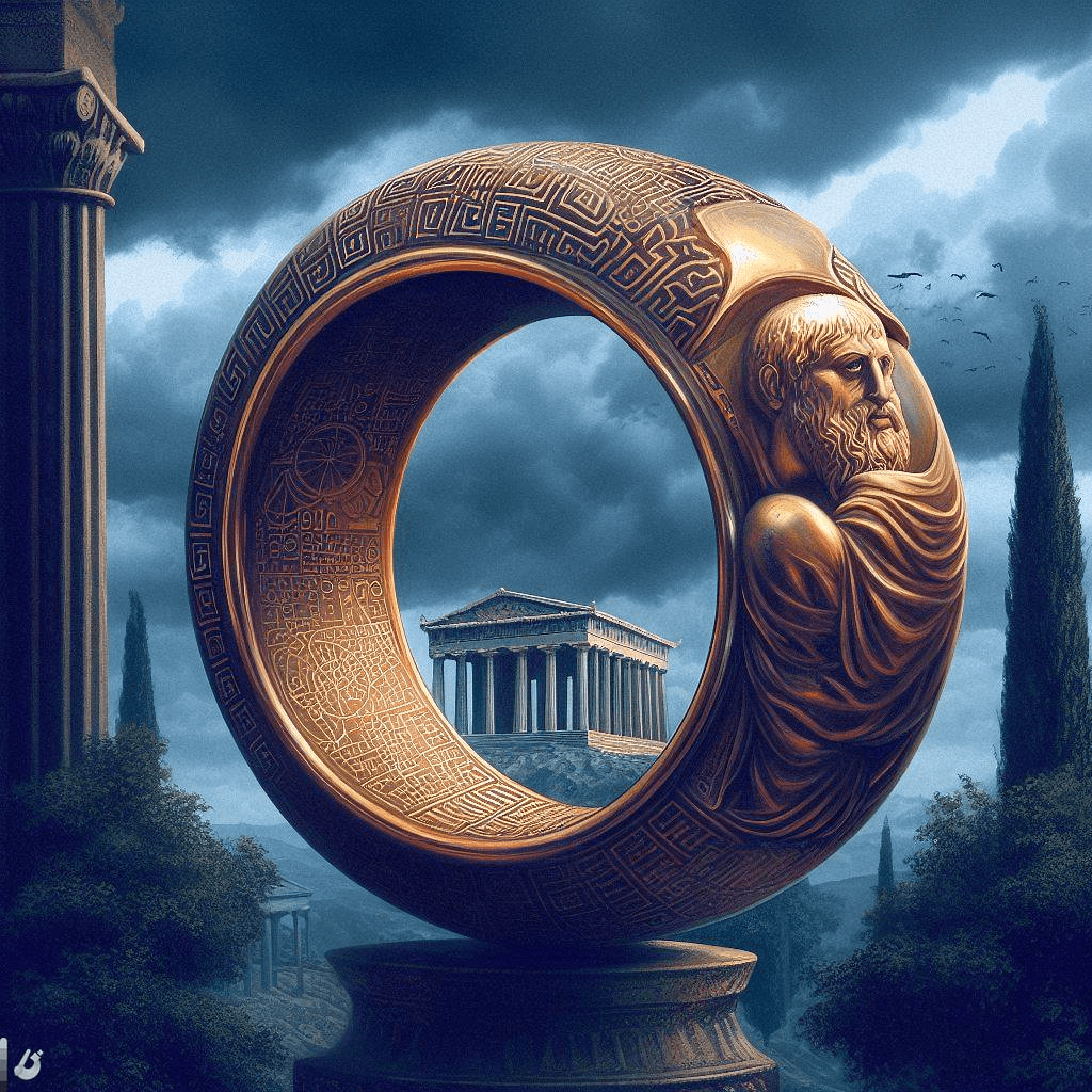 La historia del anillo de Giges en libro II de La república de Platón, cuya tema central es la la postulación de una sociedad justa. En el caso de este famoso momento de la imaginación filosófica platónica, si el hombre pudiera volverse invisible, y si no sintiera temor al castigo por infligir la ley, actuaria solo siguiendo sus impulsos egoístas que privilegian la propia satisfacción.