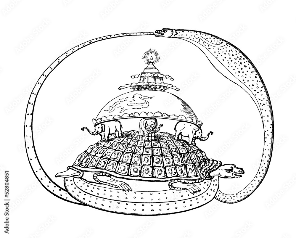 Un mito, que seguramente fue tomado de la India, es el de la montaña primordial. El monte Meru. La idea de la montaña, como simbolismo divino de altura (ya lo estudiamos entre los antiguos pueblos semíticos), tan presente en el imaginario mítico es aquí vista con algunas características muy particulares. Interesantemente teóricas y holísticas. Este mito puede proyectarse en una figura gráfica simbólica. El relato cuenta que en el origen surge el monte Meru, el falo de Siva, la columna vertebral de Buda, el lingam. Este falo erecto tiene una base terrestre y es rodeado por un océano de leche con siete continentes. Pero el monte que se incrusta en los cuerpos y en sus laderas está rodeado por tres continentes superiores. Círculos de leche donde también en cada uno de esos planos hay siete continentes en cada uno. El primero es la tierra física y los tres superiores son planos de existencia de seres benéficos o de Budas misericordiosos, mundo que guarda las huellas físicas de los Tathagatas. Debe quedar claro que son Reinos o condiciones espirituales. El plano siguiente, hacia arriba, es el Reino de los espíritus famélicos. Seres hambrientos de conocimiento espiritual. Seres con crisis existenciales. El Reino superior es el de los iluminados amarillos, cuando se entra a la rueda por el Este: Aksobya. El siguiente es el Reino de los Dioses donde rige Avalokiteshvara. Ahora bien, existen reinos inferiores o tres planos por debajo, en espejo, son el reflejo de maya. El mismo modelo lo vemos en el Tantra y en la Cábala. Estos tres mundos inferiores debajo del plano terrestre son, en primer lugar, el Reino de los animales. Seres instintivos y emocionales que representan deseos que atan al mundo kármico. Mas abajo está el Reinos de las sombras, donde encontramos fantasmas, espíritus insatisfechos que viven en un infierno. Aquí Buda transporta alimentos, pero no les sacian. Están condenados. Y en el Reino de más abajo están los Asuras o Titanes oscuros. Los devoradores de hombres. Seres sin salvación. Las almas, o, mejor dicho, las consciencias, están vagando por dichos mundos y habitando sus continentes sean celestiales o infernales en busca de redención. Es similar a las explicaciones de Platón en la porción final de La República, “El mito de Er”, donde hablaba de la metempsicosis. Cada uno de estos niveles, terrestre, celeste e infernal, son un total de siete, y cada uno de ellos posee siete continentes, son, en definitiva, siete por siete, y da un total de cuarenta y nueve regiones (7×7= 49). Cuarenta y nueve son los días que la consciencia tarda en dejar un cuerpo al morir y encontrar otro vientre para renacer. Es decir, esto habla del proceso del samsara. A la vez, cada mundo corresponde a cada uno de los tres cuerpos del Buda. Nirmana Kaya al mundo de abajo. Sambhoga Kaya al mundo terrestre y Dharma Kaya al mundo superior. Cada cuerpo es un estado de la consciencia reflejado en el rito de meditación: infra-consciencia, consciencia y supra- consciencia, es decir, los tres jhanas (estados de meditación) hasta alcanzar el jhana cuatro o nirvana definitivo, que en el símbolo de los Budas es Vairocana o Svabavika Kaya. A su vez cada plano corresponde a cada chakra. De tal manera que esta cosmología es todo un proceso físico, pránico y espiritual: