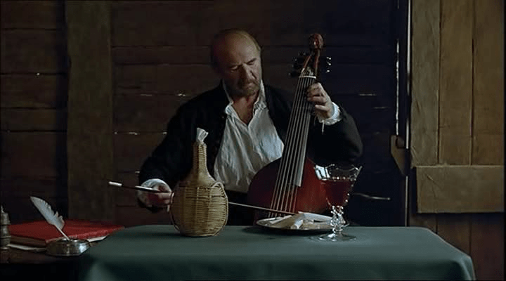 Marais escucha escondido, se deleita. Como si fuera la primera vez, Sainte-Colombe practica, practica. Merodea la perfección. Siempre escurridiza. Y se dice para sí: “me dirijo a las sombras antiguas. Si hubiera al menos alguien vivo que apreciara la música, podríamos hablar”. Marais se siente ese interlocutor, e irrumpe desde “las sombras antiguas”, en el cuarto de penumbras y soledad. Anuncia que quiere expresar “los lamentos y los llantos”.