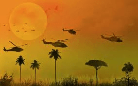 Los helicópteros del norte danzan sobre la selva del Vietcong y arrojan el ácido incendiario del napalm. Entonces, la noche y las estrellas tendrán que esperar. Porque ahora el fuego arde sobre la tierra y los soldados norvietnamitas.