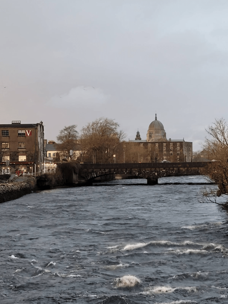 Esperamos un bus frente al Liffey. Una bella muchacha que parece una supervivencia de las mujeres celtas del mito, pregunta por Cork, la segunda ciudad en importancia de Irlanda. Comenzamos el viaje de poco más de dos horas, y aparecemos en la pequeña estación de buses de Galway. Debemos buscar un alojamiento en las afueras. Salimos a las calles con un solo dato para orientarnos. Un amable chófer percibe nuestra desubicación. Nos acerca a Eyre Square, la plaza central, y nos indica que ahí está la clave, es decir el transporte que buscamos. Llegamos a destino y nos alojamos luego de recibir las mordeduras de un frío que no habíamos sentido antes y que no sentiremos después.