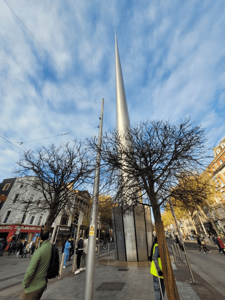 Pero la Columna Nelson ya no existe. El IRA la voló en 1966. En su lugar, en 2003 se inauguró el Spire de Dublín. Su nombre oficial es Monumento de la Luz, escultura de acero inoxidable, de unos 120 metros de altura, una de las esculturas más altas del mundo. Tenemos que levantar mucho la vista para ubicar la punta de la metálica columna que se pierde en el cielo.