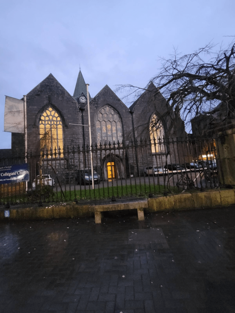 Si volviéramos sobre nuestros pasos, tras cruzar el río Corrib nos encontraríamos con la Catedral católica de San Nicolás, terminada en 1965 por una recolecta de fondos de irlandeses católicos emigrados. Kennedy, el gran visitante de Galway, fue uno de los principales donantes. Las dos catedrales recuerdan a San Nicolás, por ser este el patrón de los marineros y pescadores.