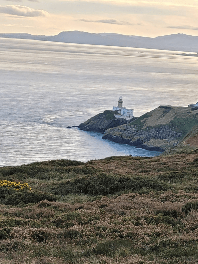 Por un camino de tierra que se desvía de una ruta, al cabo de un kilómetro de caminata aproximadamente arribamos hasta una senda que bordea un acantilado que da al ancho océano. A los pocos pasos un banco nos sirve de cómodo mirador de la inmensidad marina. Entre la vastedad de agua y olas, la imaginación puede divisar distintos tipos de navíos a través de la historia. Cerca, hacia abajo, un faro; y en la altura del sendero unas infografías que recuerdan un punto de observación del ejército de la posible actividad de barcos alemanes durante la Primera Guerra Mundial. Conversamos brevemente con una mujer inglesa que se pasea con su perro y que nos confirma el privilegio de tener ese paisaje como compañía diaria de sus caminatas.