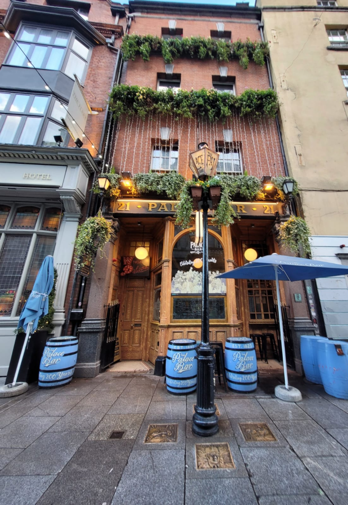 En Dublín la literatura siembra de huellas la red de sus calles. Los pubs abrigan música, cerveza y, en algunos casos, fueron techo acogedor para escritores, poetas, sirvientes de la palabra escrita. En este sentido, el Palace Bar de Fleet Street es el pub literario más popular de Dublín. Con toneles celestes en su frente y placas de homenaje en su vereda, en el siglo XX lo frecuentaron, por ejemplo, escritores como Flann O’Brien, Brendan Behan y Paddy Kavanagh. O’Brien es autor de En nadar-dos-pájaros (1939), notable obra de ingenio en dirección ya posmoderna, y columnista del Irish Times; Behan osciló entre la cultura y la militancia política en el IRA; y Kavanagh, en cuya literatura destacan su poemario La gran hambruna y otros poemas (publicado en español por Pre-textos), y su novela Tarry Flynn (1948), sobre un poeta granjero.