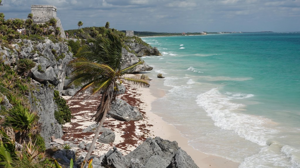 Antes del periplo mencionado al principio, que me llevó a las zonas altas de Chiapas y a San Cristóbal de las Casas, me tocó descubrir sobre el Mar Caribe la zona arqueológica de Tulum, la “Ciudad del Amanecer”. El conjunto que presencié allí de templos y castillos inundados de iguanas y casi colgados sobre el inmenso espejo marítimo, bajo un sol de «invierno» que a pesar de los fuertes vientos que lo alivian no deja de ser abrasador, provocaron que el viaje en el tiempo me resultase abrumador.