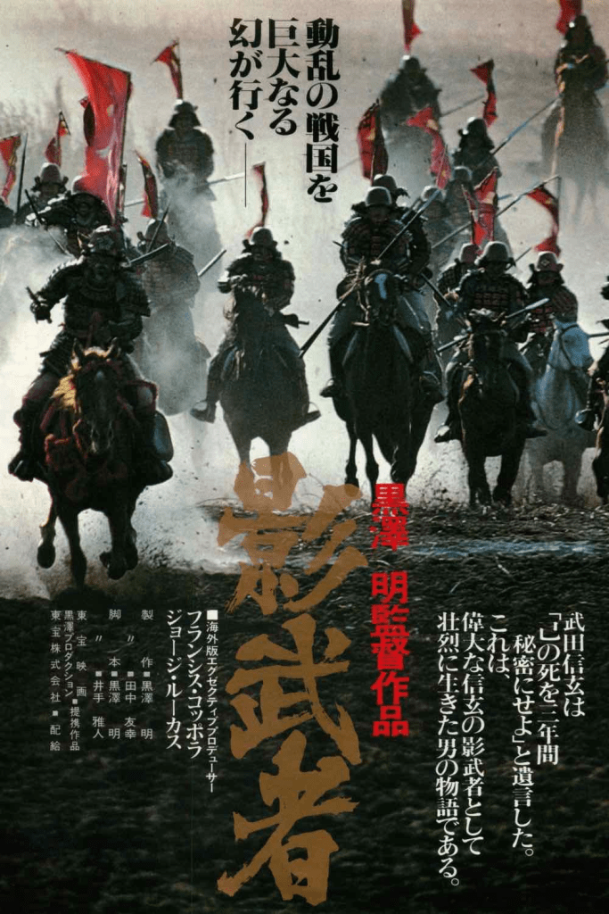 La quiebra de su productora –una cooperativa-, y un intento de suicidio, lo alejan de los sets durante un quinquenio. En 1975 recibe una inesperada propuesta de la Unión Soviética, para plasmar en imágenes los relatos de un capitán topógrafo del ejército zarista que, a comienzos del siglo XX, traba relación con un habitante de los bosques, el cual ha desarrollado una ética de conducta, de respeto a los hombres y la naturaleza, superior a la de los hombres que se autodenominan “civilizados”. DERZU UZALA, al que la industria de Hollywood concede un Oscar, probablemente con la mezquina intención de quitar a su enemigo el mérito de haber reivindicado al gran humanista japonés. Tras otro lustro sin filmar, recibe otra oferta (seis millones de dólares), un homenaje seguramente más sincero de otros cineastas –Coppola, Lukas- con los cuales realiza una nueva obra maestra: KAGEMUSHA («La Sombra del Guerrero»), ambientada en una etapa del medioevo japonés –correspondiente al Renacimiento en Occidente-, en que la lucha clánica va llevando a la unificación del país bajo un solo estado, y en que las potencias europeas comienzan a incursionar por el lejano Oriente, a traficar con sus armas de fuego y hacer conocer sus exóticas religiones. Un friso de la tragedia de la historia, mechado con escenas picarescas al estilo shakespeareano. El film obtiene la Palma de Oro en el Festival de Cannes.