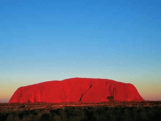 Uluru destaca por parecer que cambia de color en diferentes momentos del día y del año, sobre todo cuando se ilumina de rojo al amanecer y al atardecer.