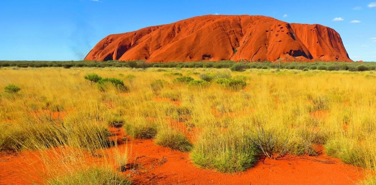 Uluru es uno de los más grandes monolitos del mundo, con más de 348 metros de alto, 9 kilómetros de contorno y 2,5 kilómetros bajo tierra. Los aborígenes, además de venerarlo como lugar sagrado, lo perciben como ombligo del mundo.