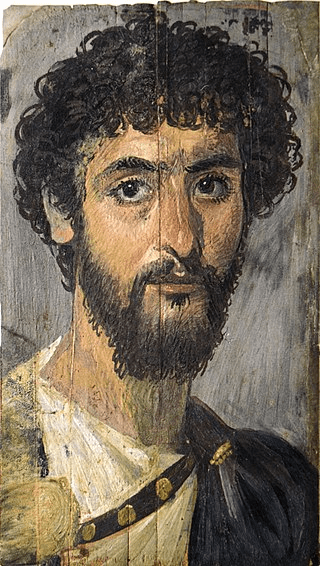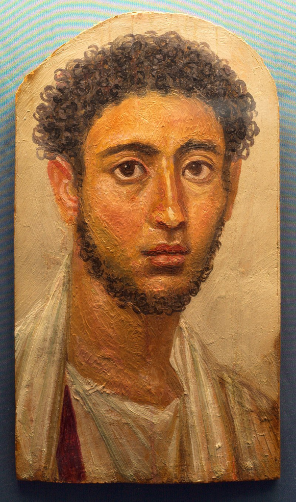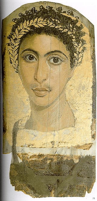 El retrato de la momia realizado al temple sobre madera. Es un joven con ropa romana, hallado en Hawara, en el oasis de El Fayum, en 1892. Actualmente se encuentra en la Colección de Antigüedades del Estado, Múnich, Alemania (Wikipedia).