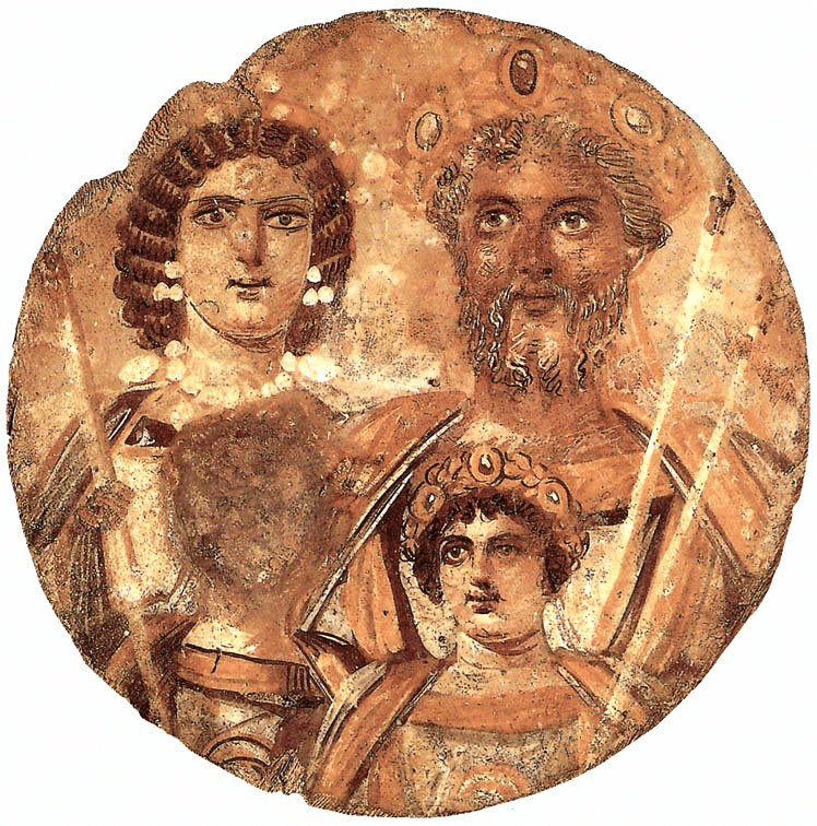 Además de los retratos de las momia de El Fayum, uno de los pocos ejemplos conservados de pintura sobre tabla es el Tondo Severo, también procedente de Egipto (alrededor del año 200 d. C.), que representa al emperador romano Septimio Severo y su familia, en Colección de Antigüedades de Berlín.