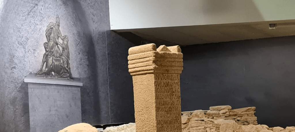 Y otro ejemplo de lo romano conservado en la ciudad gallega es de un especial valor. Cuando se excavaba para construir el vicerrectorado de la Universidad de Lugo dentro del casco histórico lucense, se hallaron los restos de un domus del siglo I d.C. Allí funciona ahora el Museo A Domus do Mitreo, muy cerca del acceso a la muralla que ya conocemos. Cuando lo recorremos nos guía una muy simpática y servicial empleada, que nos hace sentir que realmente ama el tesoro cultural allí conservado: distintos cimientos y recintos de la casa de un centurión, con murales, un patio, un pozo, mosaicos, hasta una inscripción conmemorativa dedicada al Dios Mitra en un altar para la celebración del Dios.