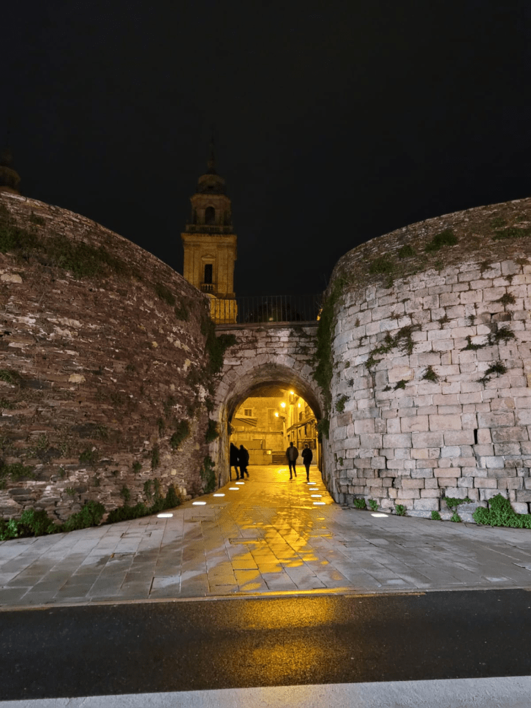 En Lugo, Galicia, se encuentra la muralla romana conservada más extensa del mundo. Transitar por ella de día o de noche, comunica con los vestigios de la cultura de la Antigua Roma que permanecen plenamente vigentes en la cultura moderna.