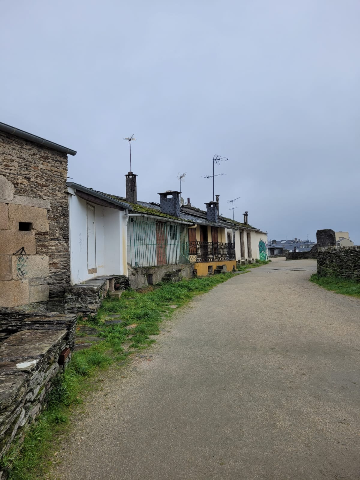 Al trasponer el puente, nos adentramos en una calle rodeada por casas bajas. A la izquierda, se anuncia la Rúa de Brétema. La estrecha callejuela bordea un descampado cubierto con pasto y con un par de árboles. Unas cabras retozan allí. Una de ellas prueba la firmeza de sus cuernos al embestir contra uno de los árboles. Aquella situación nos hace sentir que cruzar el puente romano nos acerca a un resto de vida rural de un pasado no totalmente desaparecido.