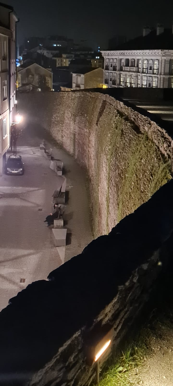 Roma es un ejemplo de la dinámica contradicitoria de todos los imperios. Por la fuerza, la violencia y la muerte, imponen no sólo su dominio, sino también la paz. La pax romana, digo. Así es, y durante ese tiempo, nos dice el profesor de historia lucense, y a pesar de algunos emperadores desquiciados, se consolidó el Derecho, la ingeniería civil, un sentimiento de pertenencia a una comunidad dada por la ciudadanía romana. ¿No piensa que Europa como identidad colectiva es quizá una creación de la civilización romana que impuso una misma ley en buena parte del actual territorio europeo? Es posible y lo inquietante es que siempre las civilizaciones necesitan de la violencia organizada para generar sus aportes a la historia, comento. Es la extraña condición humana, agrega Laura. Recorran la muralla también a la noche, mucho les gustará, nos dice nuestro amable interlocutor, del que nos despedimos luego de una grata y enriquecedora charla. Lo veremos una vez más en el bar panadería Manso, en la Rúa del Bispo (obispo) Aguirre, atendida por unas muy amables empleadas.