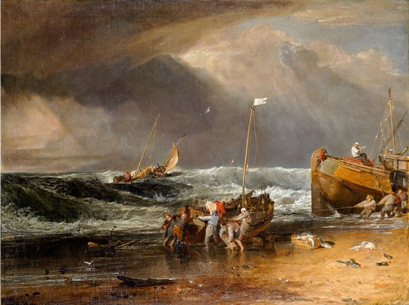 Pero si volvemos a la pintura previa a la cuasi-abstracción de Turner regresamos a su expresión de la naturaleza poderosa. Por ejemplo, a través de la fuerza violenta del mar…