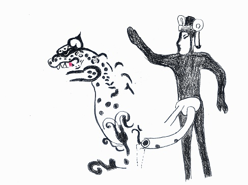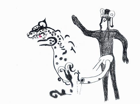 Además de Señor del Mundo Subterráneo, el jaguar es también el Señor de los Animales Salvajes. Es fuerza rectora de la jungla y de las montañas. En los ecos y los tambores de llamada puede presentirse su respiración acezante.