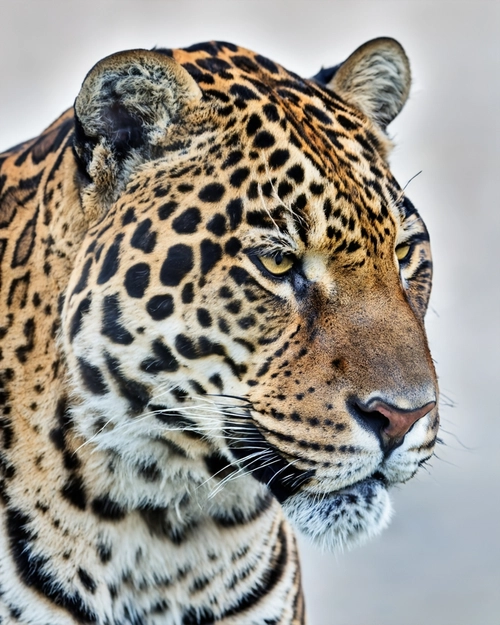 El atributo que diferencia al jaguar de los otros felinos es su piel moteada, saturada de rosetas de color café oscuro con pequeñas pigmentaciones en el centro. La multiplicidad de manchas cumple la consabida función de mimesis con el entorno selvático, el camuflaje que disimula la presencia amenazante del animal cazador