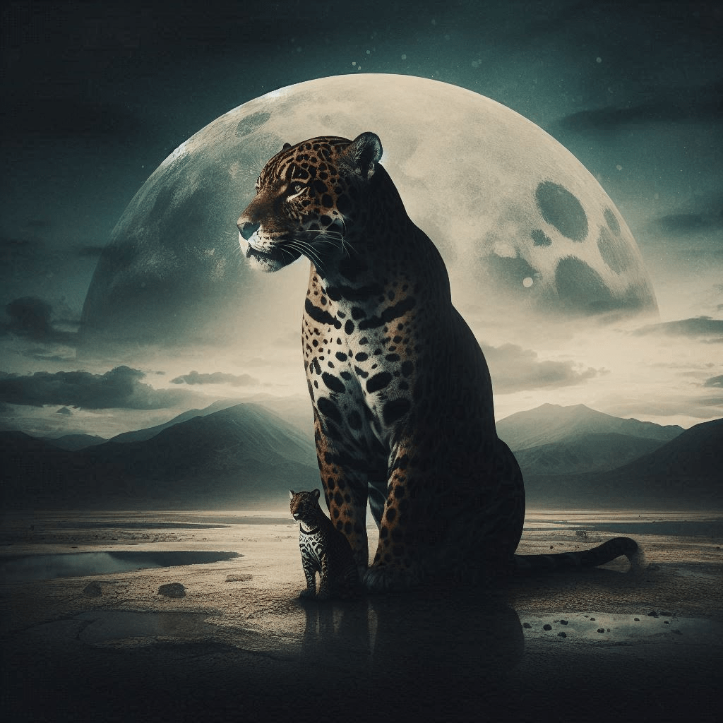 En las praderas opalinas de la noche, la Luna se desplaza con gracia y luz, mientras experimenta el acecho de un ser caliente y astuto que, en algunos casos, salta sobre ella para nutrirse de su carne plateada. El gran jaguar celeste comienza a devorar a la Señora de la Noche. Pero entonces los hombres saben dispensar un auxilio. Hacen ruido con golpes de madera, morteros, y ladridos de perros. Entonces, el animal cazador, aturdido, confundido, suelta su presa. Y la Luna vuelve a brillar, íntegra. Desde el plano simbólico, el jaguar como dueño de la noche es puente de comunicación con los dioses. En este sentido, Alfredo López Austin, antropólogo y historiador mexicano, estudioso de las culturas mesoamericanas, en Tamoanchan y Tlalocan (1994), afirma: «en la cosmología mesoamericana, el jaguar es el dueño de la noche, del inframundo y de la selva. Es el animal que puede comunicarse con los dioses y es el símbolo de la realeza y el poder.»