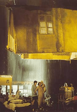 Y esto ocurre en una decisiva escena donde, dentro de la casa de la abuela, aparece una maqueta del templo milanés. Una mujer desenrolla los hilos rojos de la esfera. Y los enrolla luego en la maqueta del templo. El templo vuelve así a integrarse en el tejido universal, por donde circula la sangre de la fuerza vital, la sangre, lo rojo, que cura, realiza. Y luego irrumpe el fuego que quema, deshace, reduce a cenizas las formas cerradas.