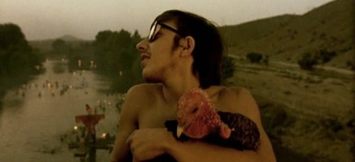 Luego, Perhan duerme abrazando a su pavo. Entonces, acontece el quiebre mágico de la unicidad del tiempo y el espacio occidental normales. Perhan asciende, levita. Aéreo, leve, se aleja de su cama. Lo animal se convierte, a la manera chamánica, en «espíritu auxiliar», ser aliado que conduce a lo humano a otro nivel de lo real, distinto y mágico. Y siempre aferrado a su animal aliado, Perhan vuela hasta un río donde el pueblo gitano celebra un ritual. Una ceremonia sagrada de purificación a través del agua y el fuego…