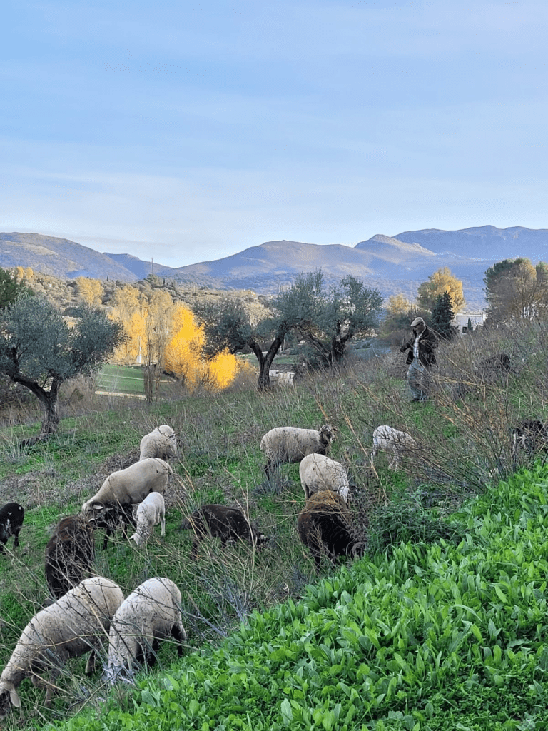 Y pasamos al otro lado del Puente Nuevo. Nos adentramos en el Barrio de San Francisco, y por un camino descendente llegamos a la planicie que se desenrolla hasta las sierras. Allí, como si regresaremos al siglo XIX, nos encontramos con lo que parece un pastor de ovejas. Laura habla con él, seguramente se sorprende por el interés de una visitante.