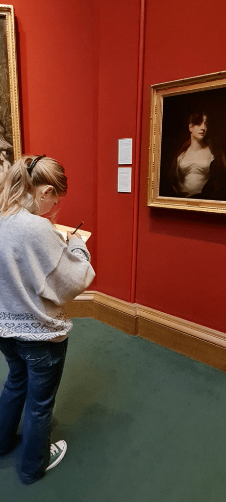 Mucho nos sorprende una niña que dibuja un retrato que se exhibe. Esta abstraída en los trazos de su lápiz. Nos llena de ternura observar su meditada imitación de una pintura del siglo XIX, y su avidez por desenvolver su habilidad por la mano y el lápiz, con lentitud amorosa, en estos tiempos de rápidas imágenes automáticas gestionadas por inteligencia artificial. La IA puede replicar velozmente el proceso creativo de una imagen pero no experimentar el regocijo sensorial del lento alumbramiento de la belleza.