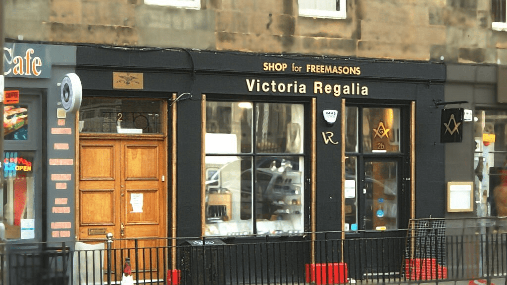 Luego de ubicarnos en la ciudad, al recorrer la Royal Mile casi lo primero que encontramos es un comercio de artículos masónicos. Los masones justamente siempre vistos por el cristianismo como un «mal» por su culto laico al libre pensamiento. Vemos delantales, medallas con el compás y la escuadra, el ojo del Gran Arquitecto; presencia del simbolismo de una ancestral sociedad, antes, secreta, ahora, discreta. Escrutamos con fascinación la vidriera que protege los símbolos de una cofradía centenaria. Lo masónico tradicional (la masonería operativa) solo admitía en sus ocultas filas a picapedreros, albañiles, constructores de templos; trabajadores de las rocas talladas, empeñados, con sus instrumentos de construcción, en una gran obra.